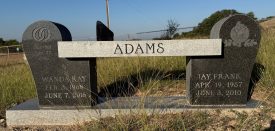 Jay is survived by his wife Wanda Adams of Bangs; three daughters, Erin Lassiter and husband Adam of College Station, Mattie Adams of Cleburne, and Callie Adams of Bangs; his parents, Frank and Johnnie Adams of Moline, TX; a sister, Tammy Dyer and husband Gordon of Bangs, and numerous nieces and nephews.