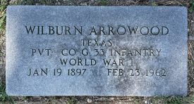 ARROWOOD, Wilburn (Red) was born in Gatesville, Texas, in January 19, 1897, and passed away Feb. 22, 1962. at the and passed age of 65 years. He married Cleda Mae Cook, daughter of Mr. and Mrs. Henry Cook. Cleda was born in Putman, Texas, January 12, 1903. “Red” is buried in the Payne Gap Cemetery.